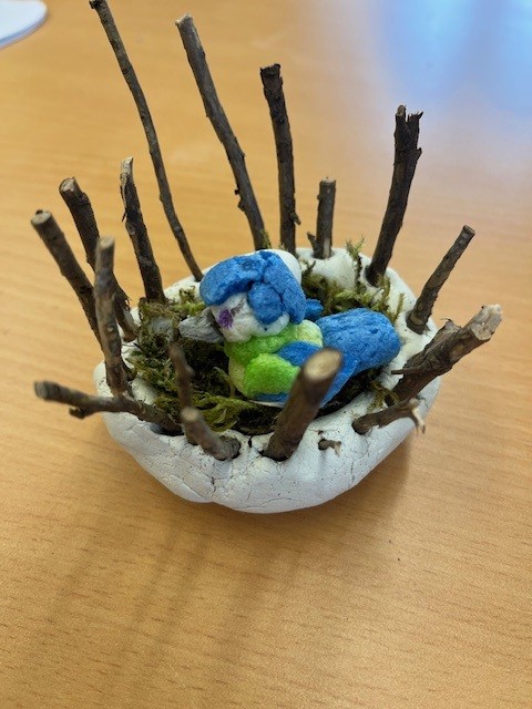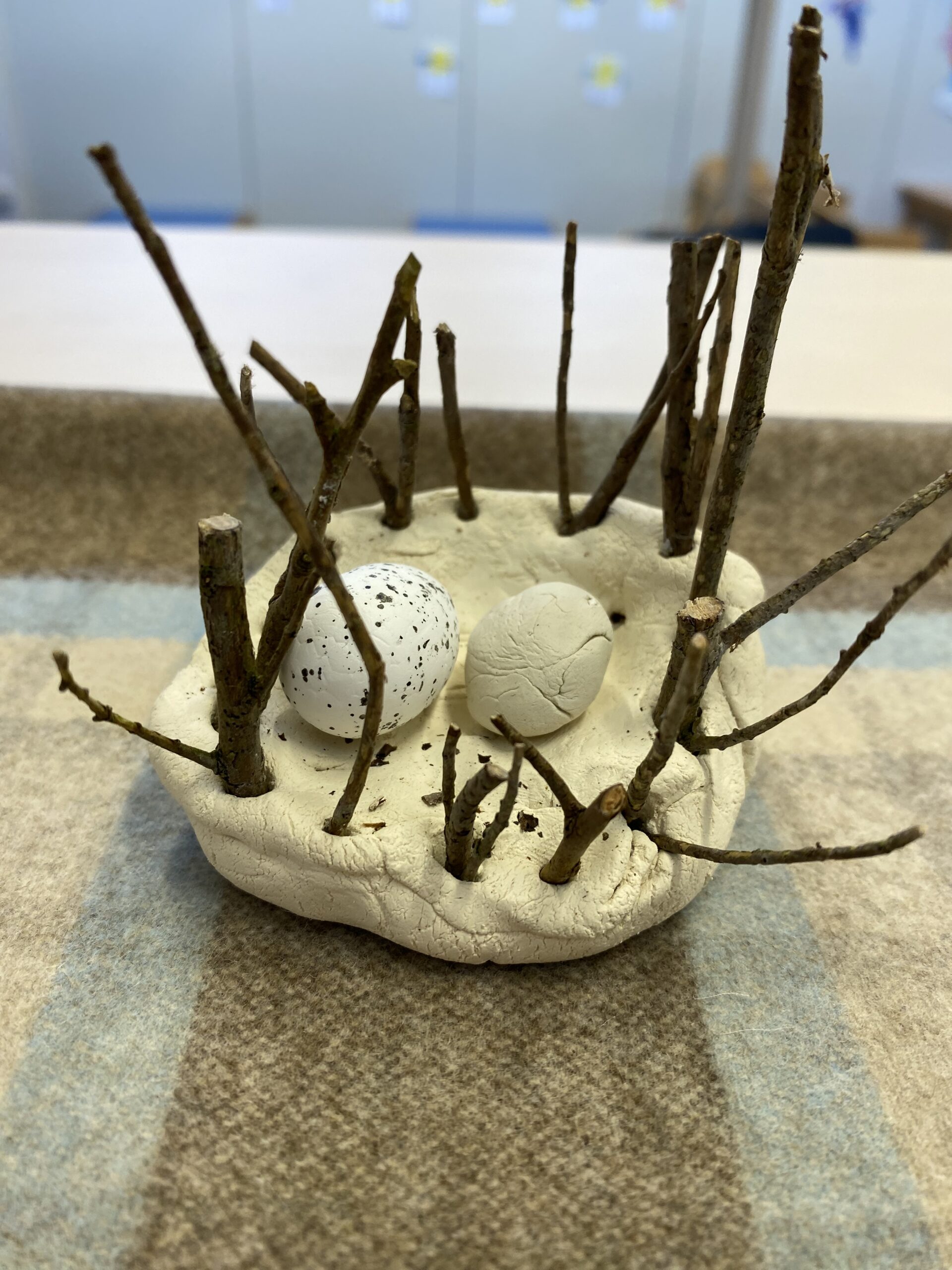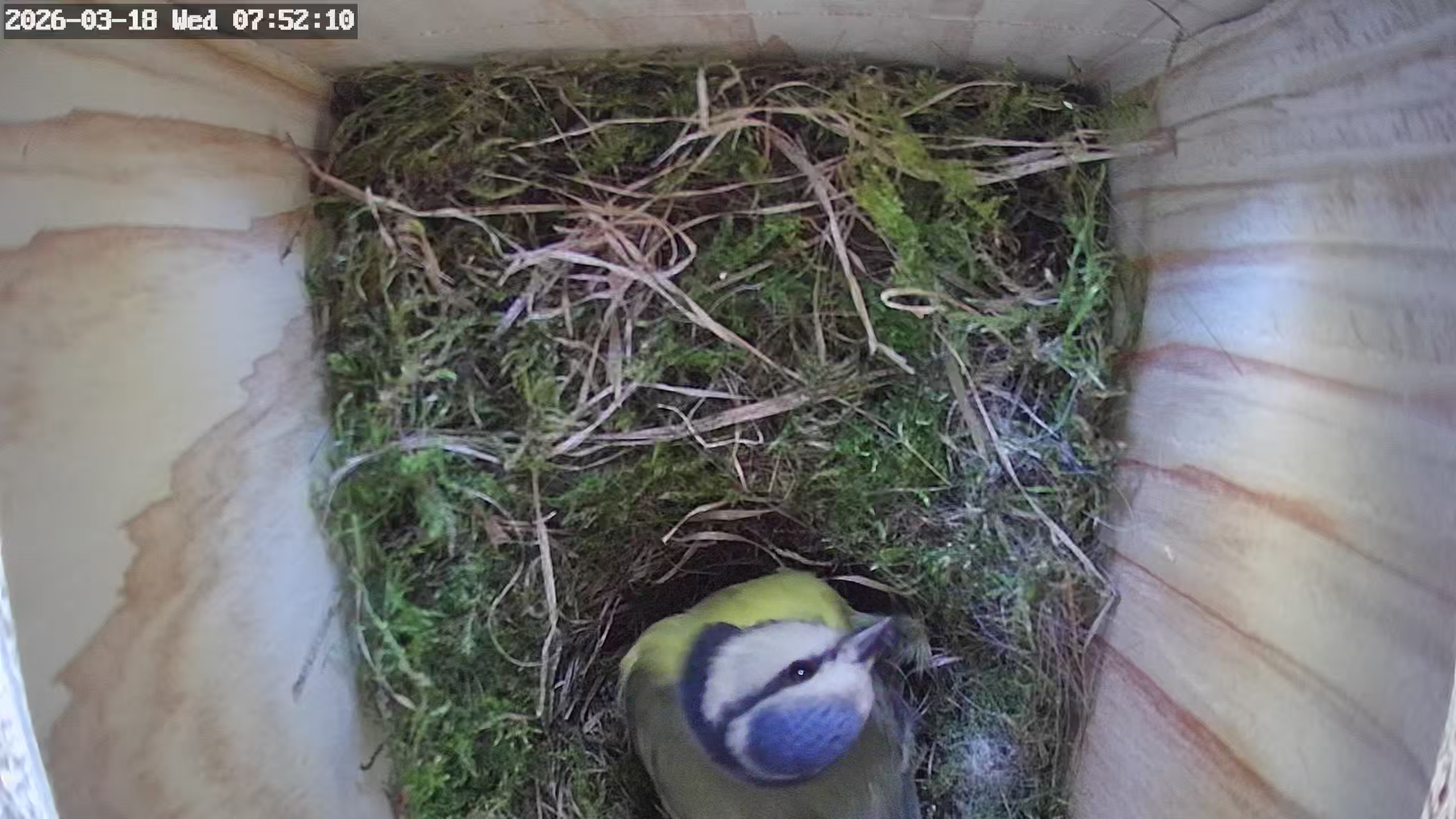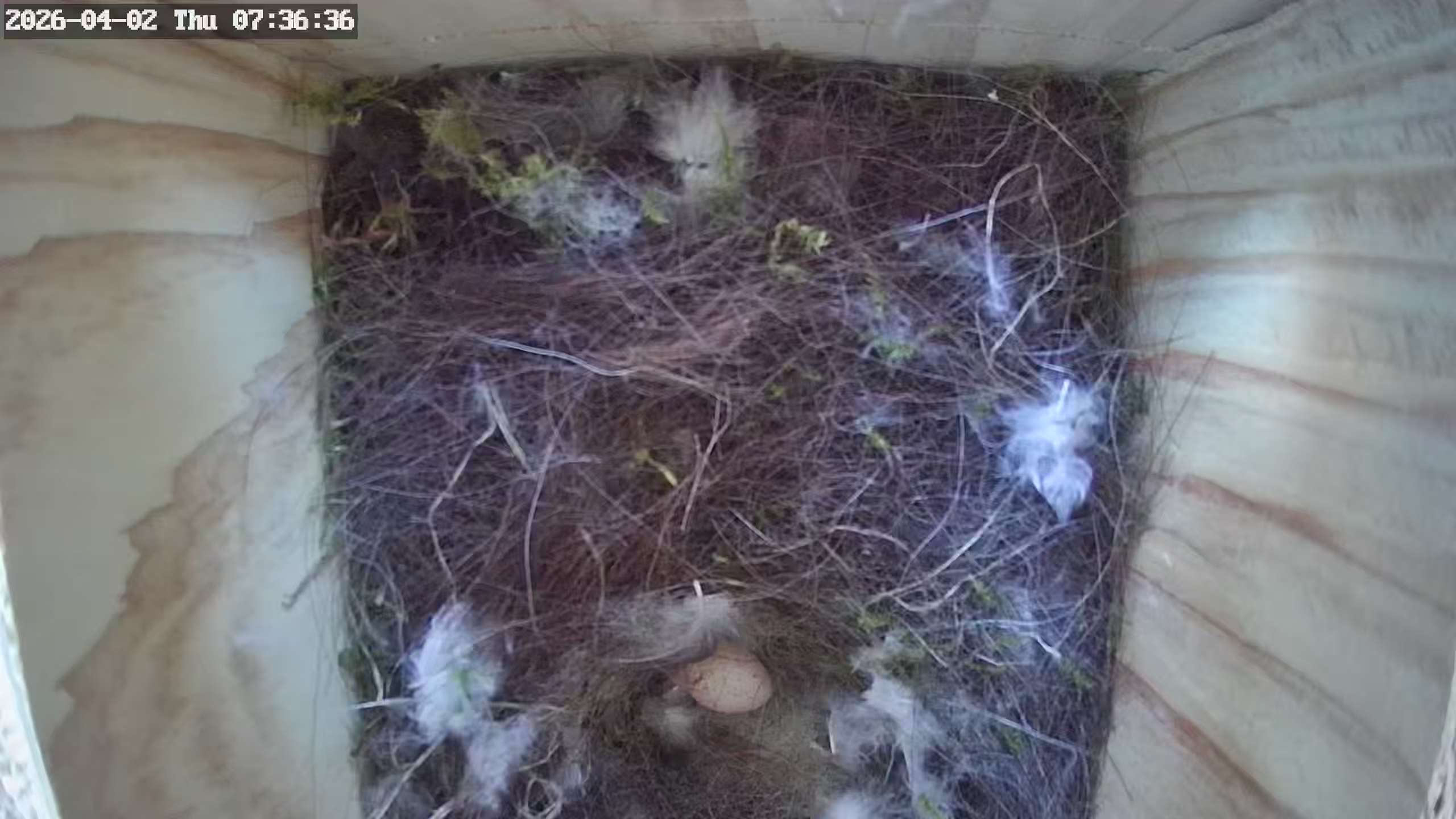 In unseren Kindergartennistkasten ist ein Blaumeisenpärchen eingezogen. Heute Morgen haben wir das 1. Ei entdeckt!!